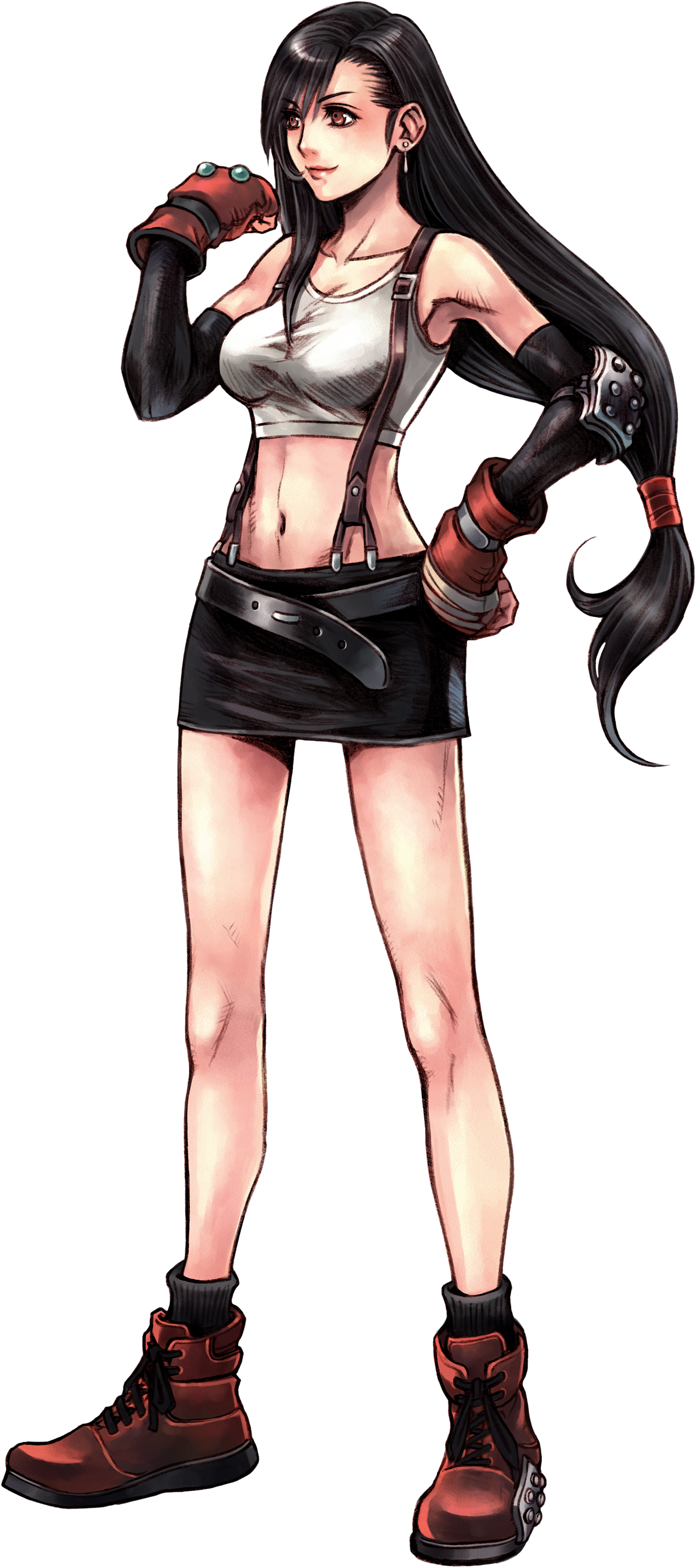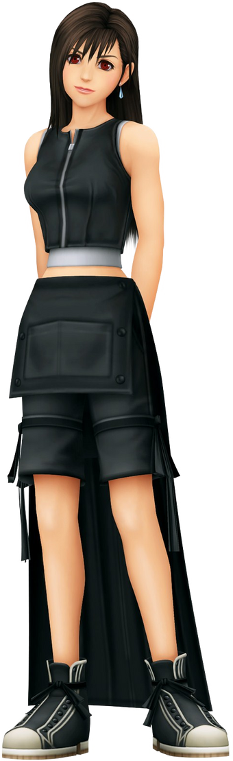 Tifa lockhart item material. In all her outfits across her many appearances tifa has worn some variation of a sleeveless shirt that exposes her midriff a miniskirt and a white teardrop earring on her left ear.